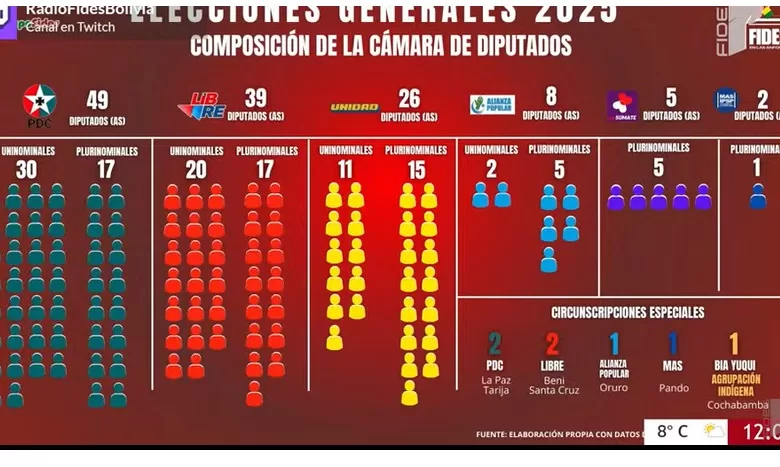 Unidad obtuvo 35 legisladores, de los cuales dos son supraestatales, quedando con 33 escaños: siete senadores y 26 diputados. La Alianza Popular inscribió ocho legisladores, todos en la Cámara de Diputados, mientras que Autonomía Para Bolivia – Súmate (APB-Súmate) consiguió seis escaños: un senador y cinco diputados.